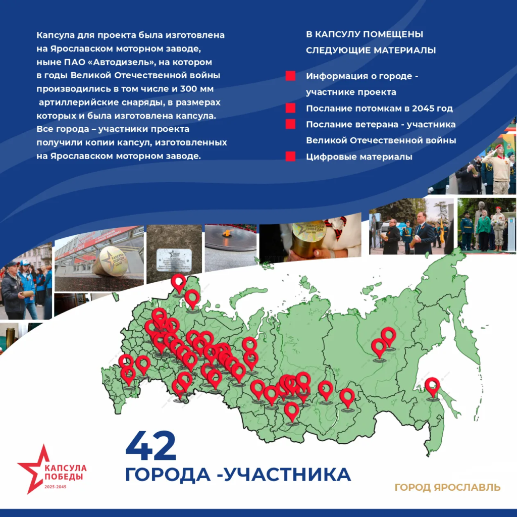 Ярославскую область представляет проект «Капсула Победы» в номинации «Великое наследие для будущих поколений». Он направлен на сохранение памяти о Великой Отечественной войне и объединение Городов трудовой доблести.